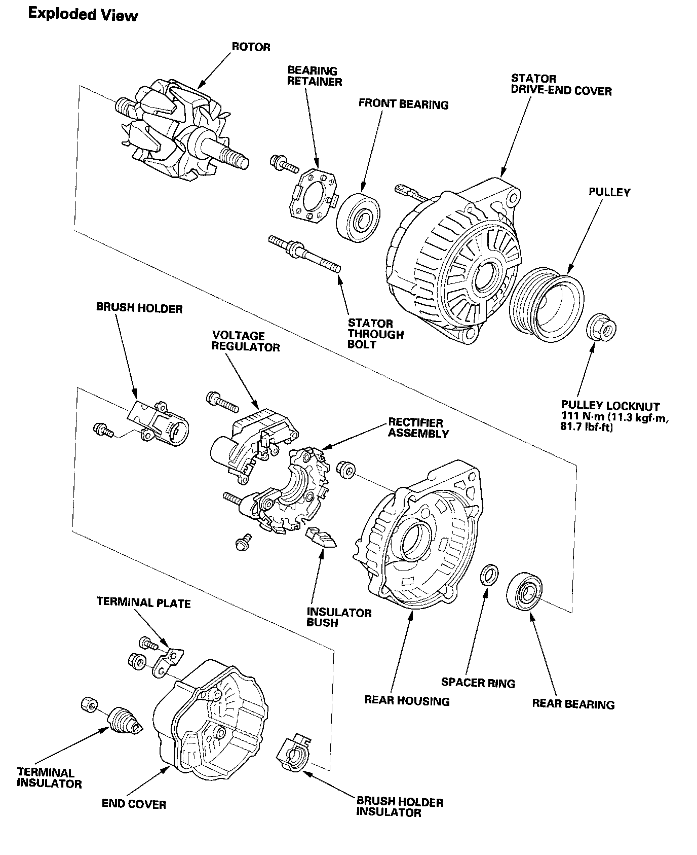 24. Reassemble the alternator in reverse order of disassembly, and note these items: