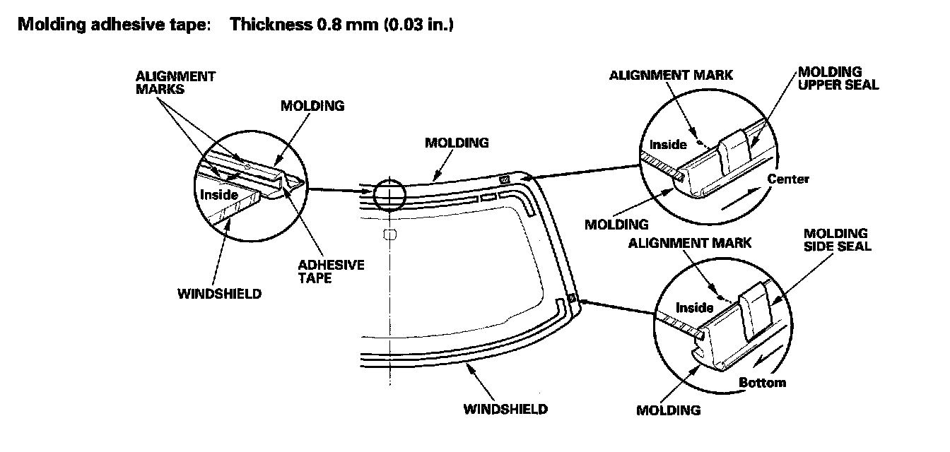 - Be sure the alignment marks on the molding line up with the alignment marks on the windshield.
