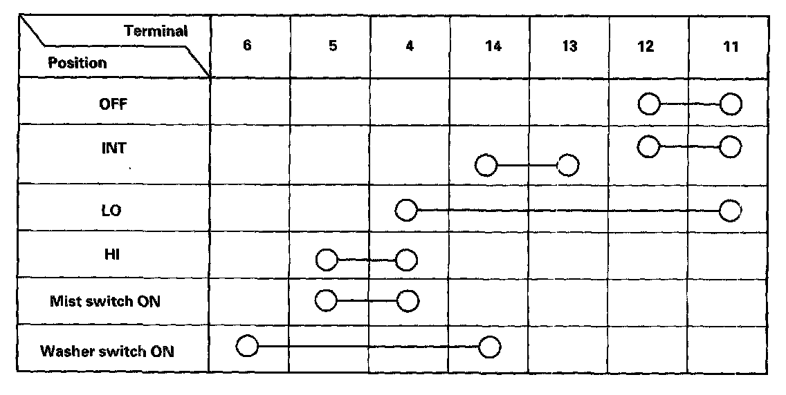 4. Check for continuity between the terminals in each switch position according to the table. If the continuity is not as specified, replace the switch.