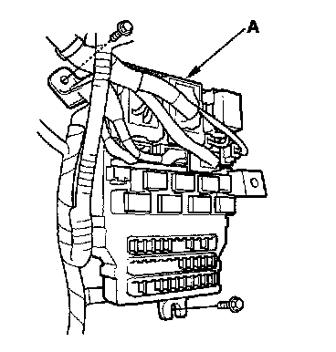 5. Disconnect the connectors from the fuse side of the under-dash fuse/relay box (A).