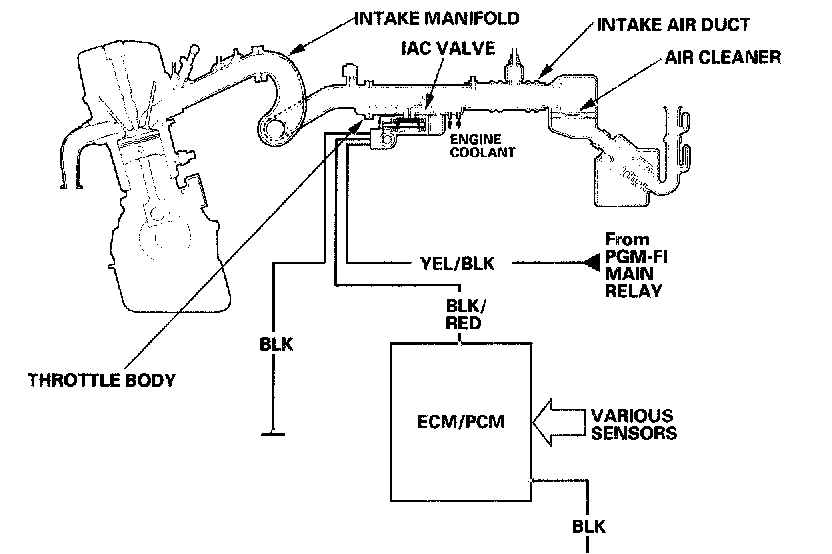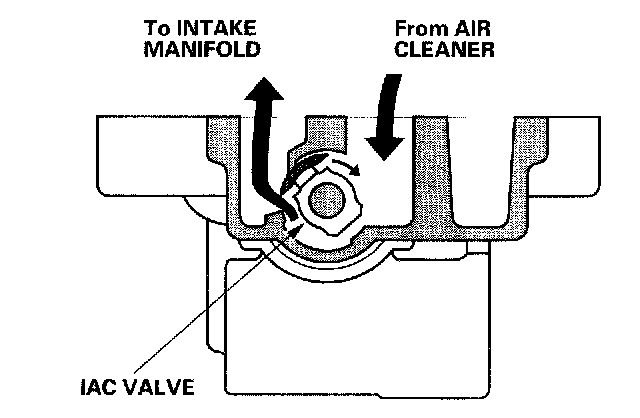 Idle Control SystemThe engine idle speed is controlled by the idle air control (IAC) valve:
