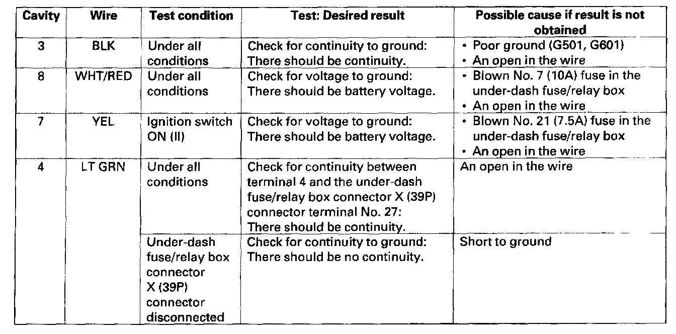 Home >> Honda >> 2005 >> Accord L4-2.4L >> Repair and Diagnosis >> Powertrain Management >> Computers and Control Systems >> Information Bus >> Testing and Inspection >> Component Tests and General Diagnostics >> Combination Switch Control Unit Input Test