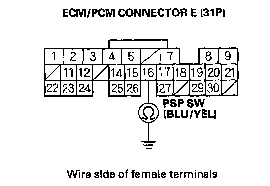 NO - Repair open in the wire between the PSP switch and ECM/PCM (E16).