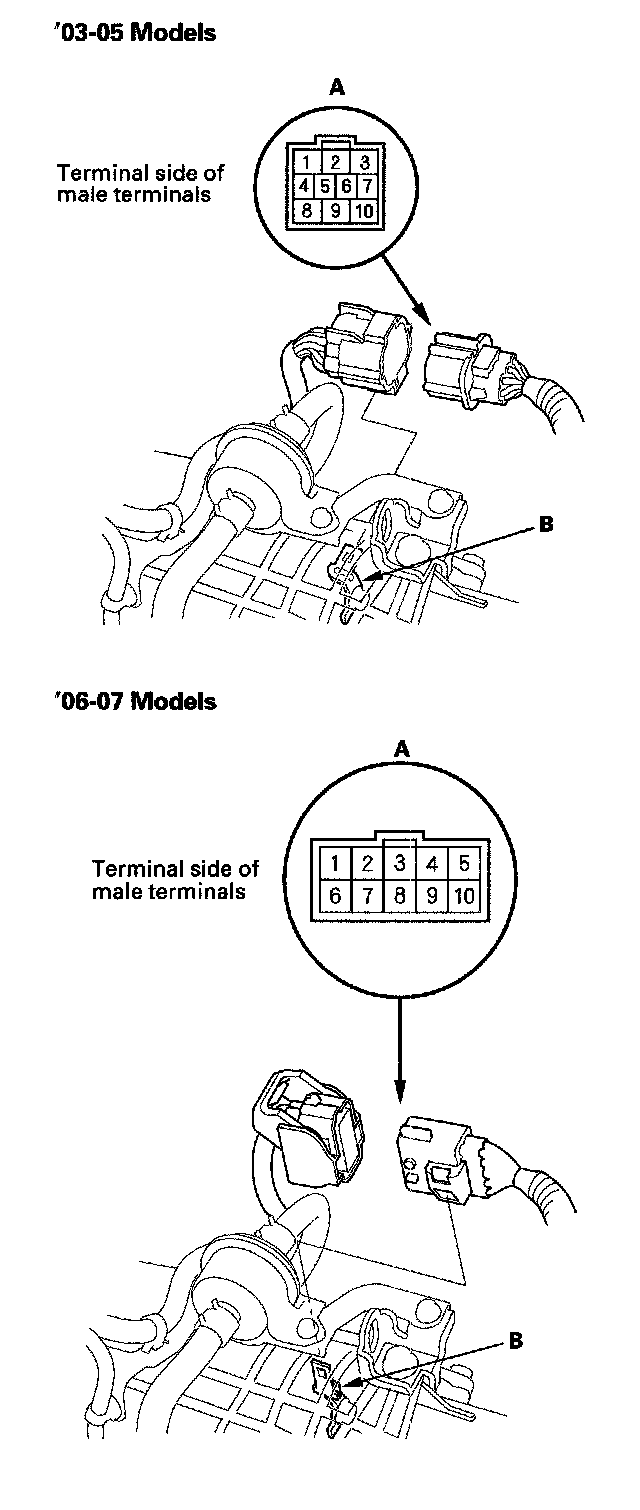 Home >> Honda >> 2005 >> Accord L4-2.4L >> Repair and Diagnosis >> Powertrain Management >> Computers and Control Systems >> Transmission Position Sensor/Switch >> Testing and Inspection