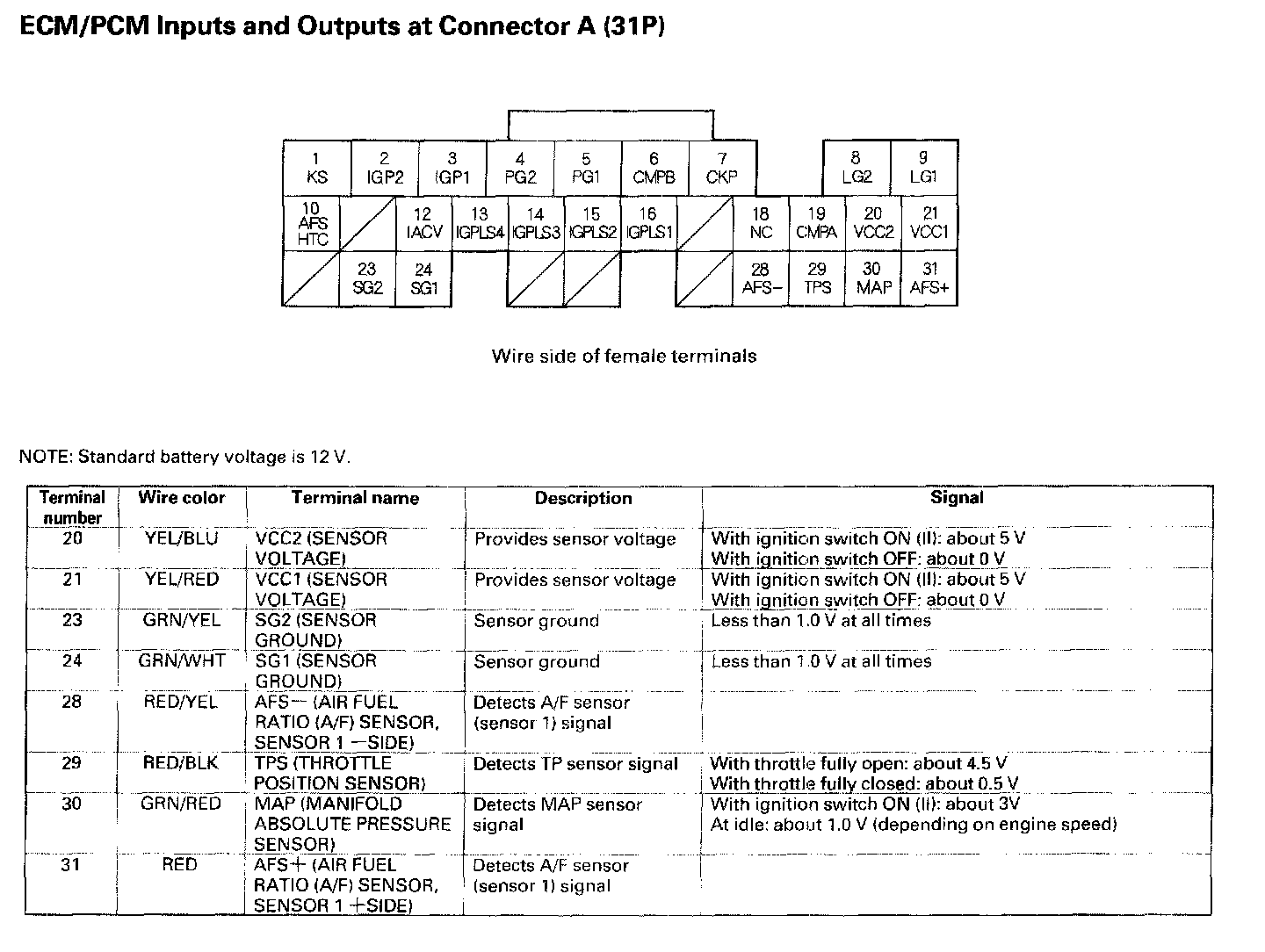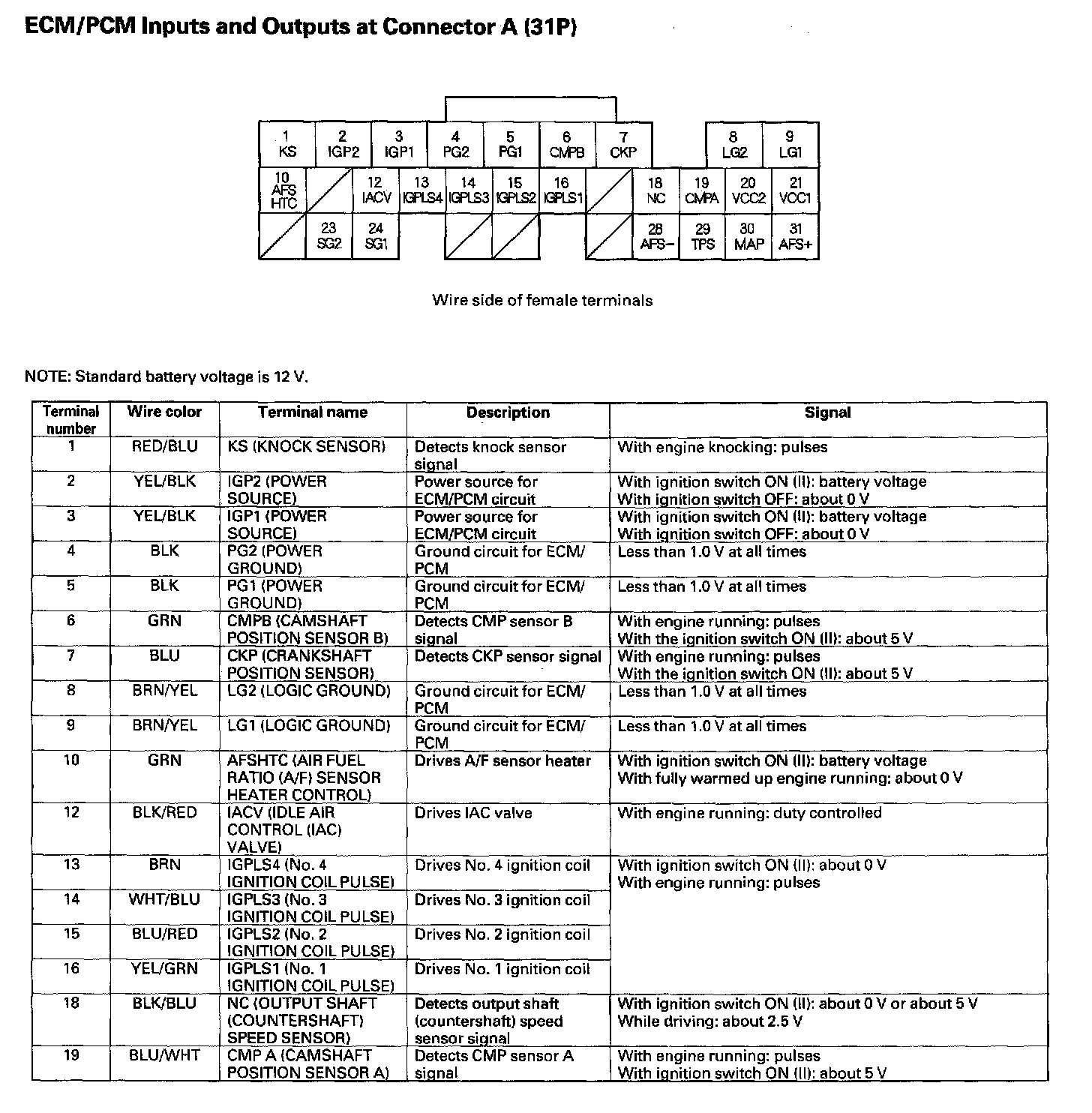 ECM/PCM Inputs And Outputs At Connector A (31P) Part 1: