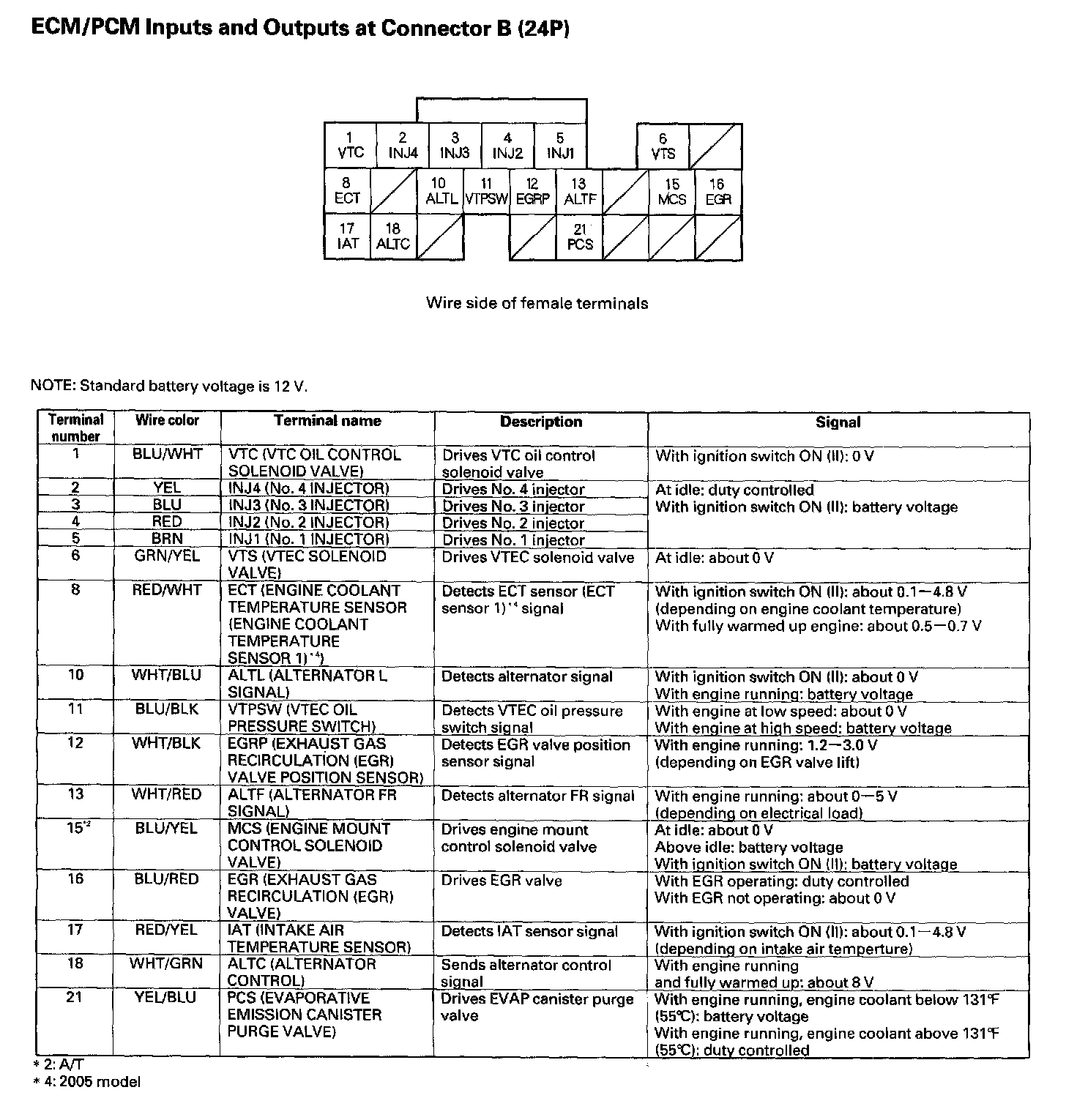 ECM/PCM Inputs And Outputs At Connector B (24P):