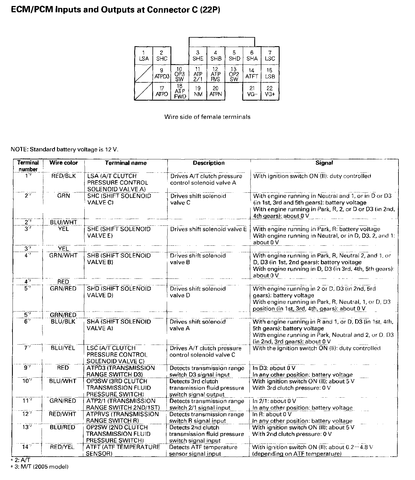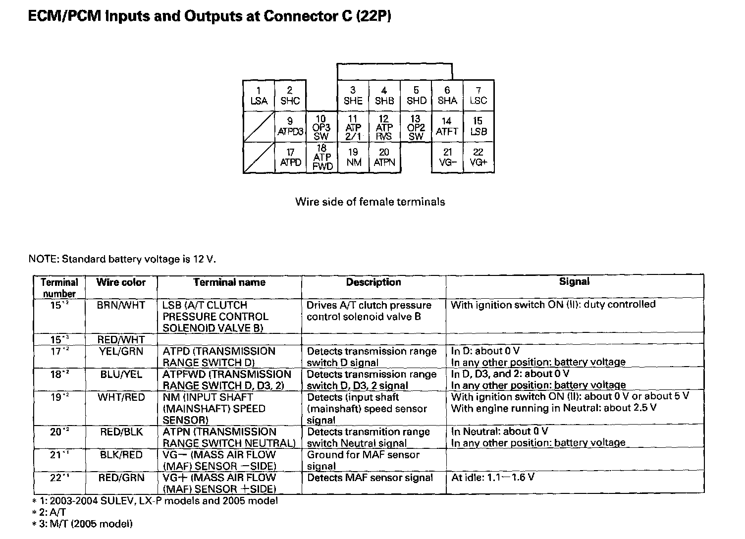 ECM/PCM Inputs And Outputs At Connector C (22P) Part 1:
