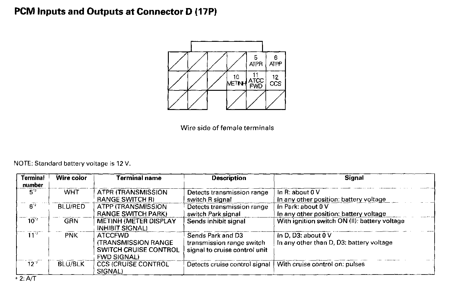 ECM/PCM Inputs And Outputs At Connector D (17P):