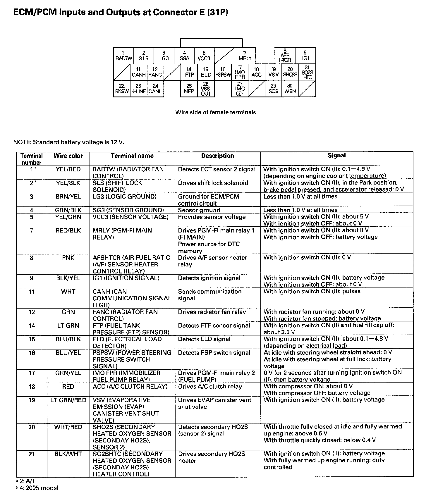 ECM/PCM Inputs And Outputs At Connector E (31P) Part 2: