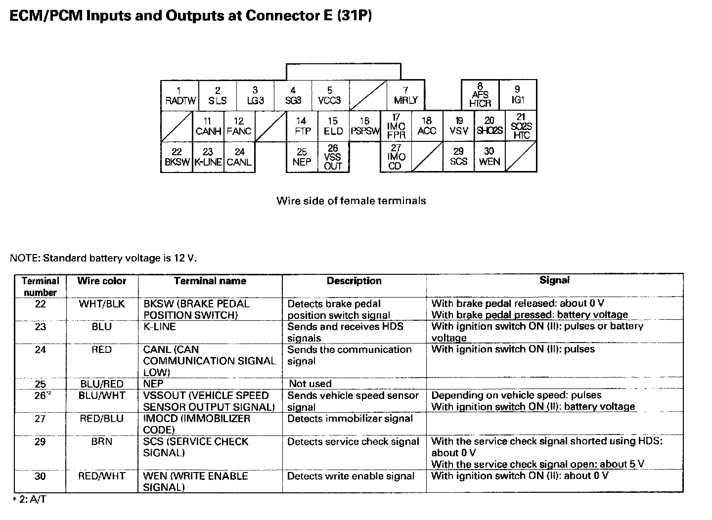 ECM/PCM Inputs And Outputs At Connector E (31P) Part 1: