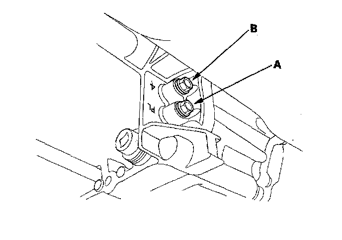 4. Connect the oil pressure gauges to the line pressure inspection hole (A) and 4th clutch pressure inspection hole (B). Do not allow dust or other foreign particles to enter the holes while connecting the gauges.