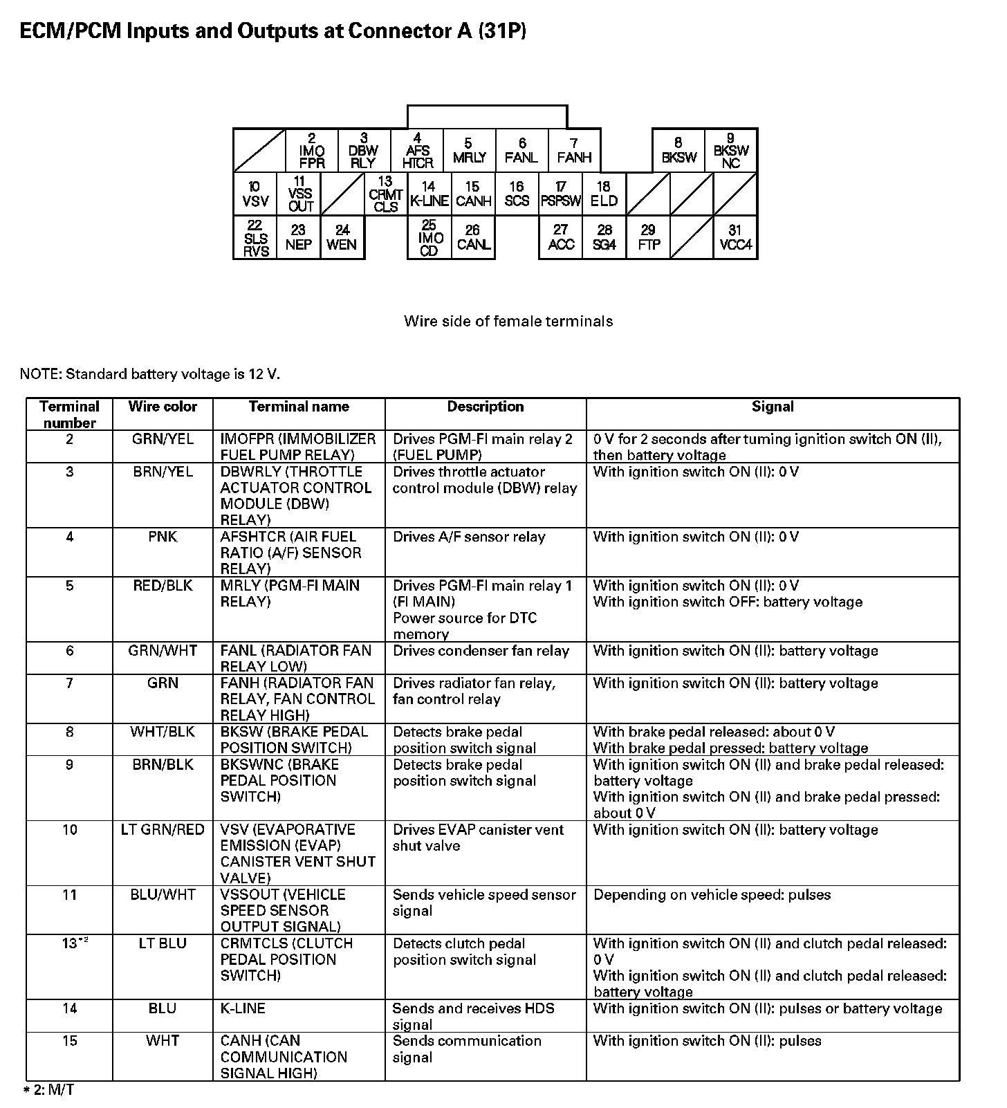 ECM/PCM Inputs And Outputs At Connector A (31P) Part 2: