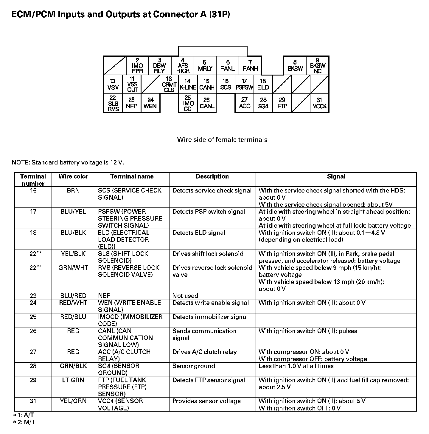 ECM/PCM Inputs And Outputs At Connector A (31P) Part 1: