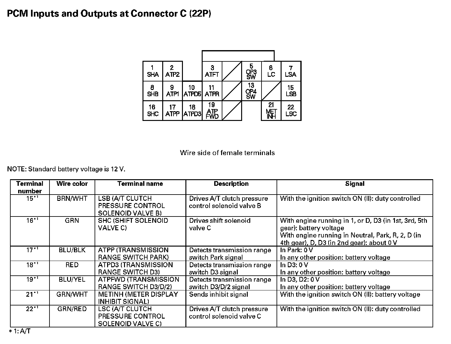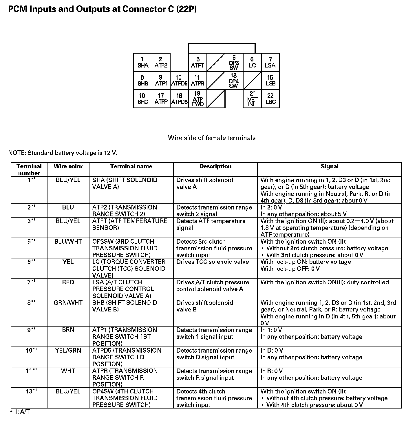 PCM Inputs And Outputs At Connector C (22P) Part 1: