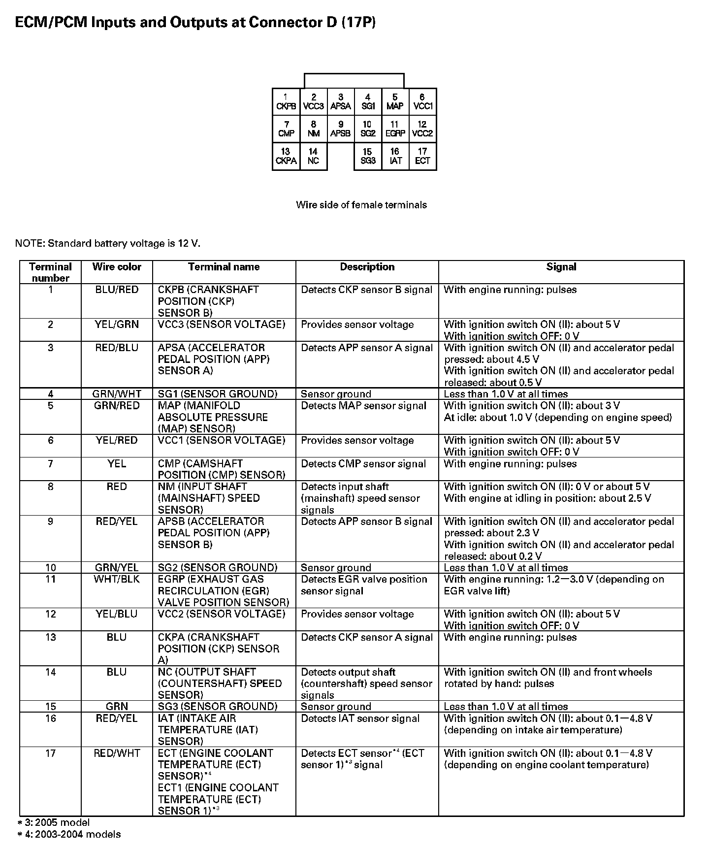ECM/PCM Inputs And Outputs At Connector D (17P):