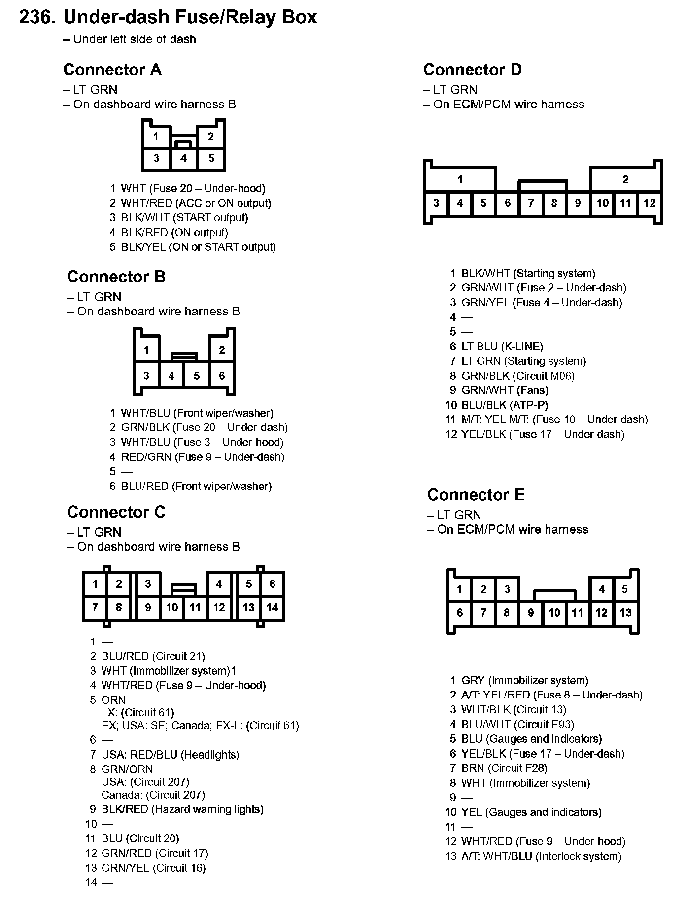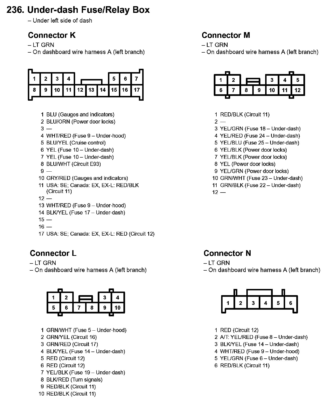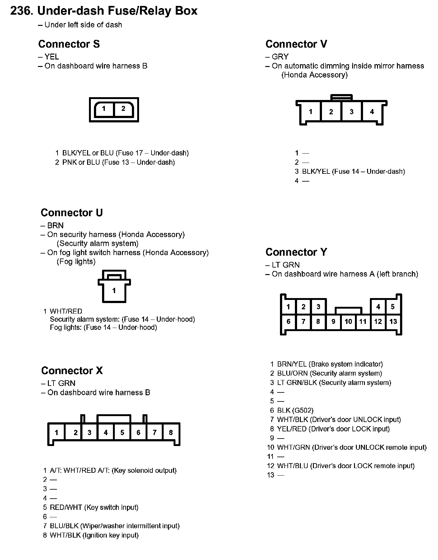 236. Under-dash Fuse/Relay Box: