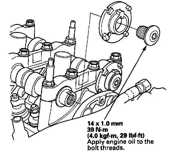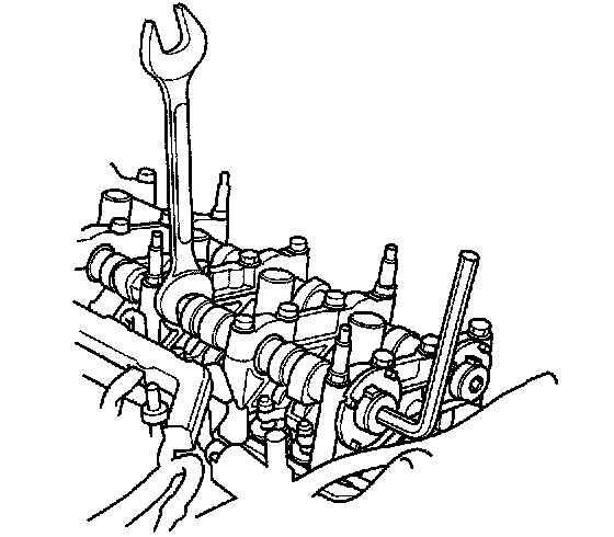 2. Hold the intake camshaft with an open-end wrench, then loosen the bolt.