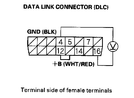 2. Measure voltage between DLC terminals No.4 and No.16.