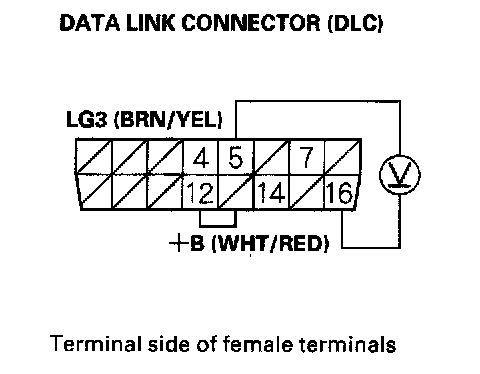 3. Measure voltage between DLC terminals No.5 and No.16.