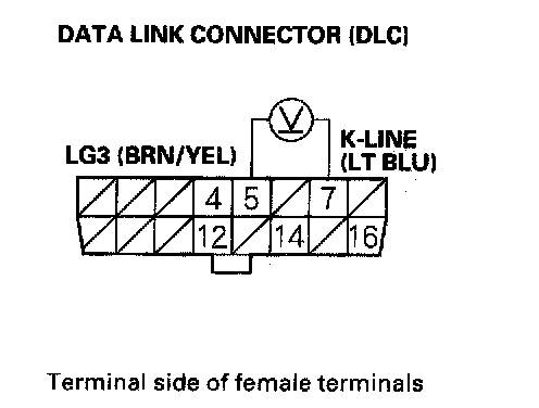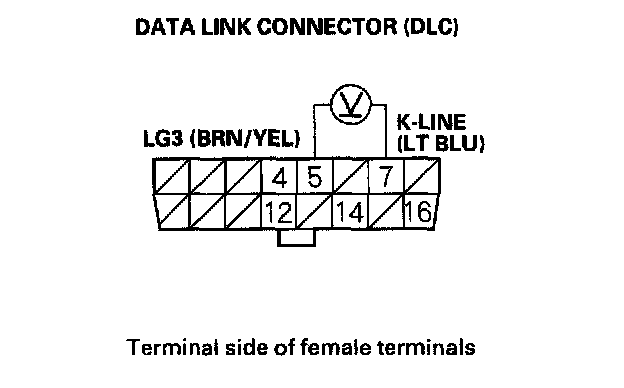15. Measure voltage between DLC terminals No.5 and No.7.