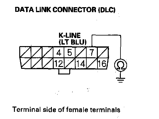 9. Check for continuity between DLC terminal No.7 and body ground.