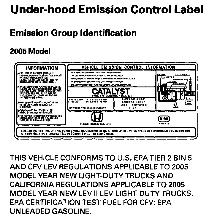 Emission Group Identification (2005 Model):