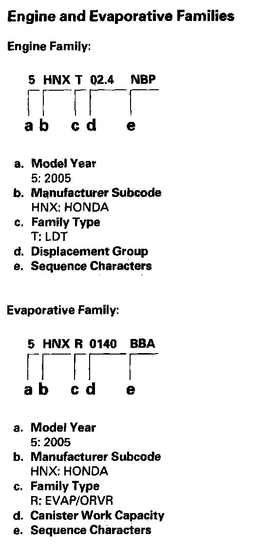 Engine And Evaporative Families: