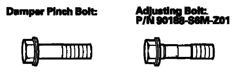 NOTE: The camber angle can be adjusted up to ±15' (center of tolerance) by replacing one damper pinch bolt with the adjusting bolt. The camber angle can be adjusted up to ±30' by replacing both upper and lower damper pinch bolts with the adjusting bolts.