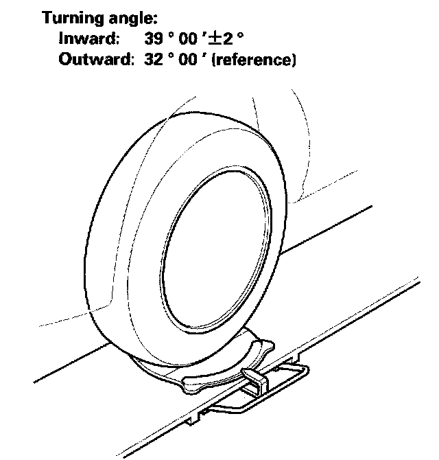 2. Check the toe. If it is correct, but the turning angle is not within the specification, check for bent or damaged suspension components.