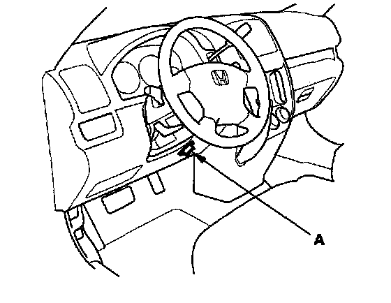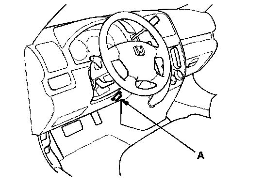 2. Connect the HDS or the Honda interface module (HIM) to the data link connector (DLC) (A) located under the driver's side of the dashboard.