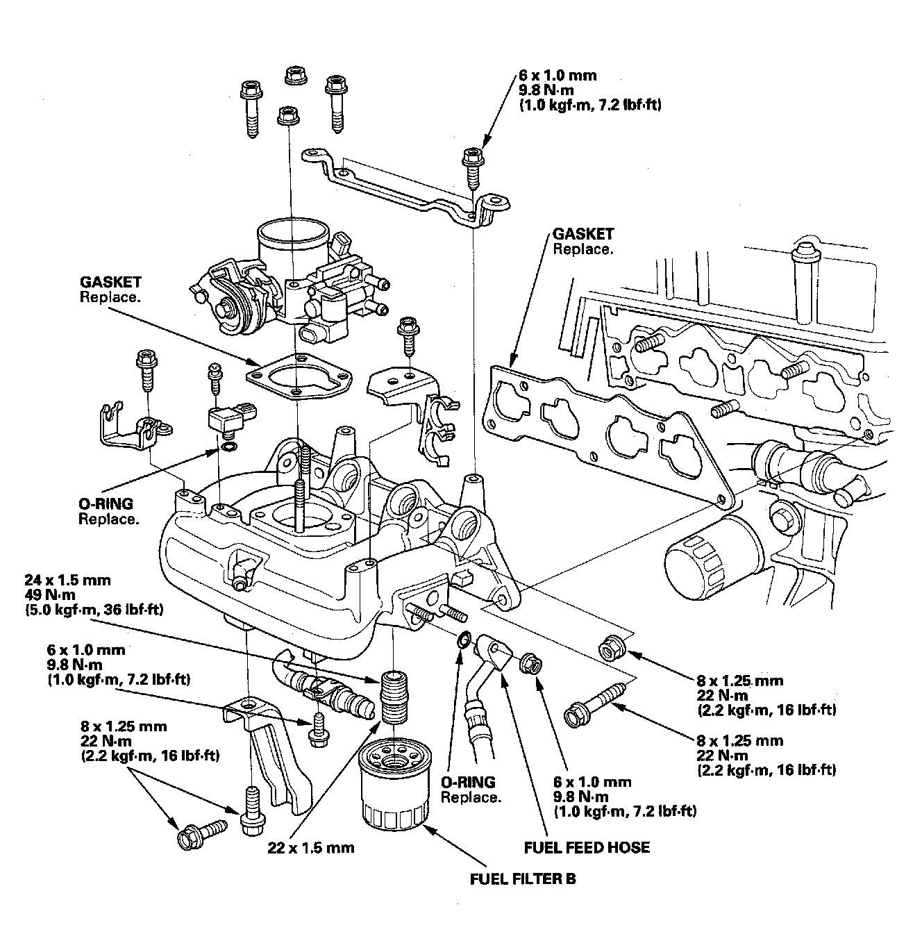 Use new O-rings and gasket when reassembling.