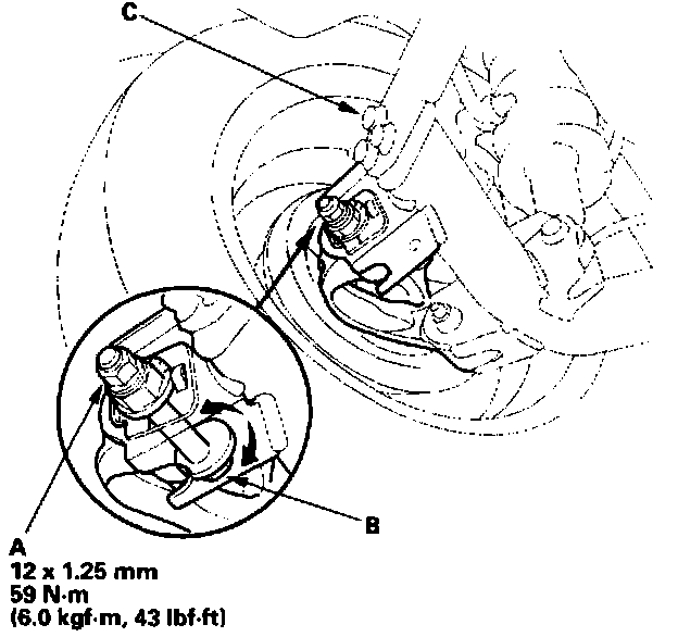 4. Turn the tie-rod end (C) until the toe is correct.