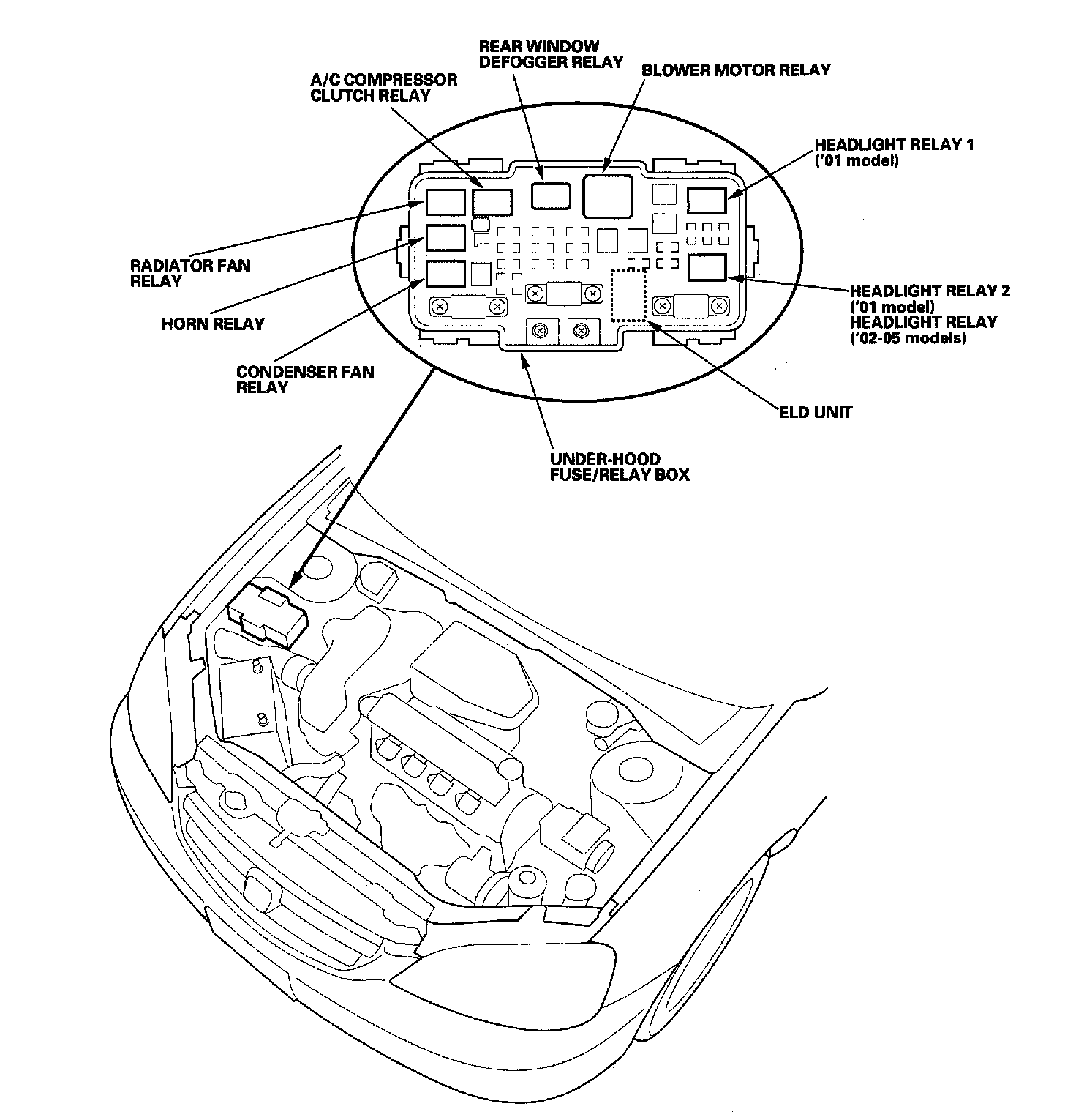 Relay And Control Unit Locations - Engine Compartment:
