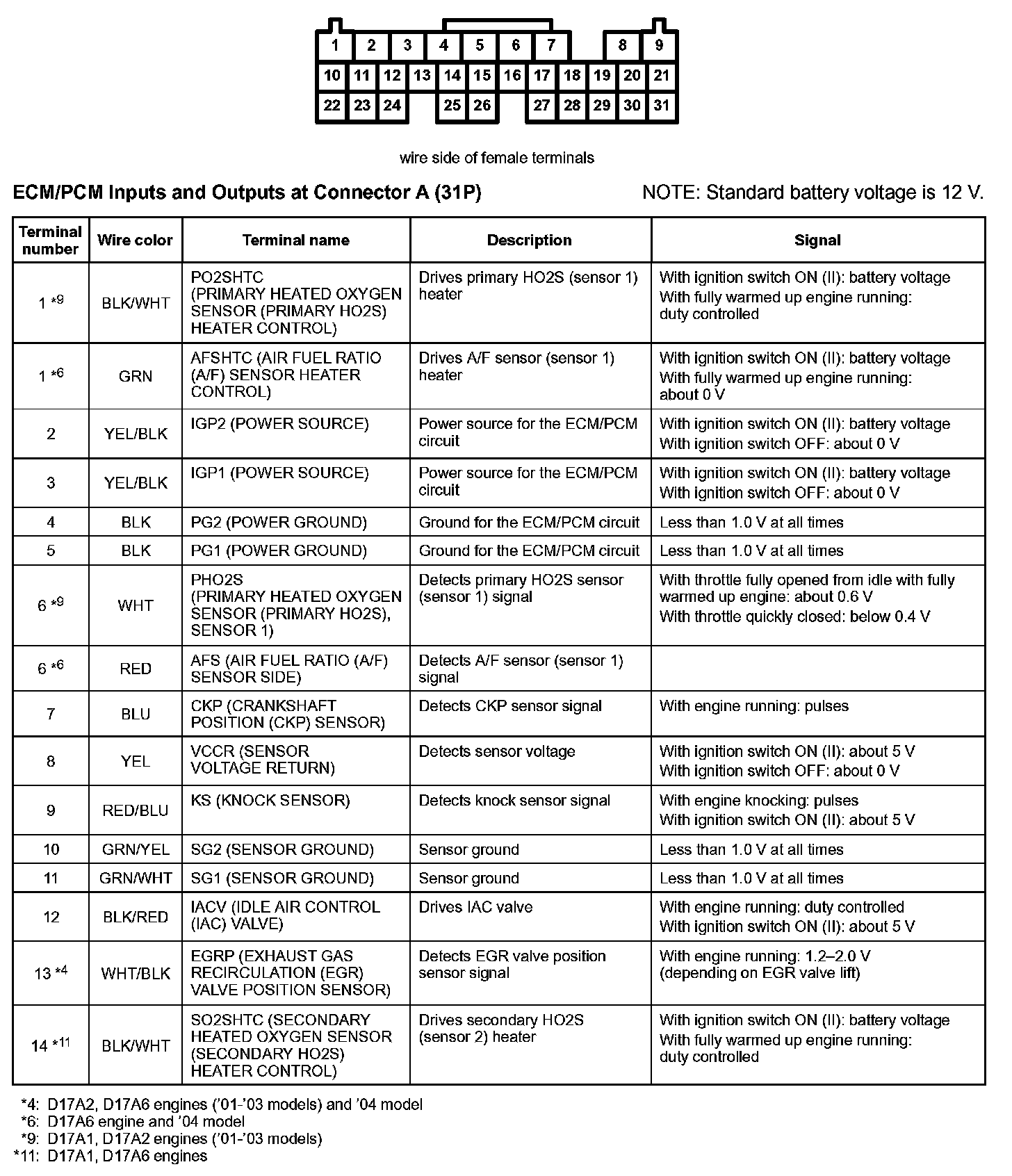 ECM/PCM Inputs And Outputs At Connector A (31P):