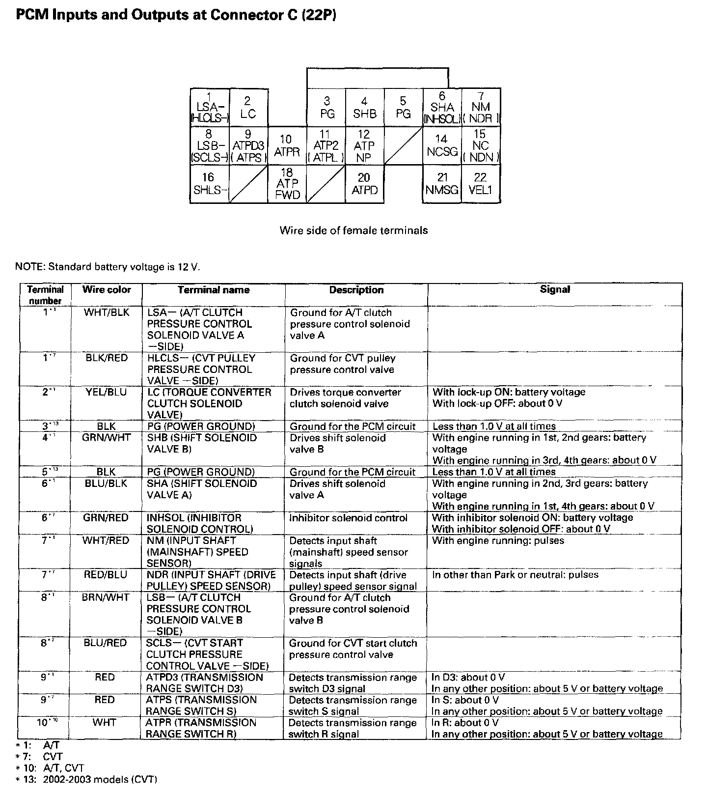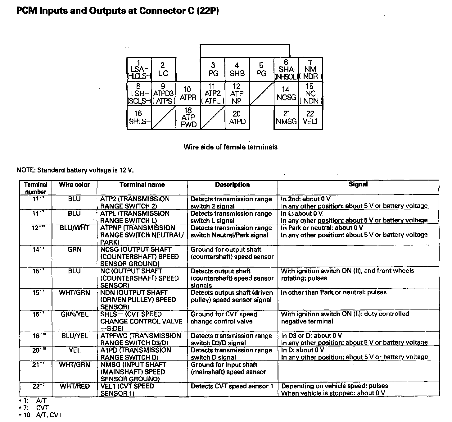 PCM Inputs And Outputs At Connector C (22P) Part 1: