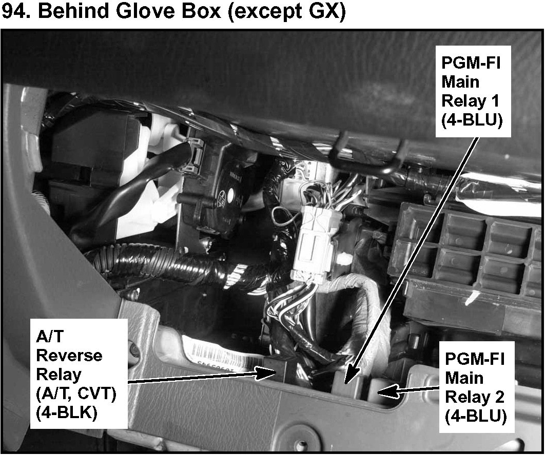 94. Behind Glove Box (except GX):