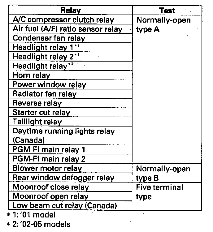 Power Relay TestUse this chart to identify the type of relay, then do the test listed for it.