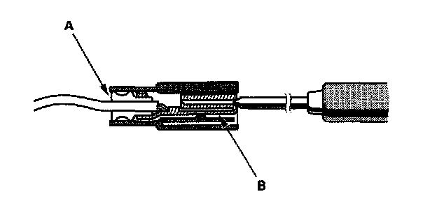 3. If you cannot get to the wire side of the connector or the wire side is sealed (A), disconnect the connector and probe the terminals (B) from the terminal side. Do not force the probe into the connector.