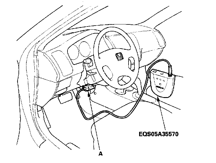 3. Connect the HDS to the vehicles data link connector (DLC) (A).