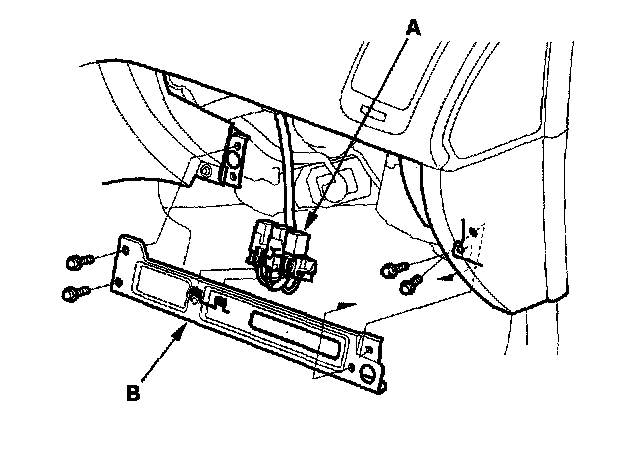 5. Remove the relays (A), then remove the bolts and the glove box frame (B).