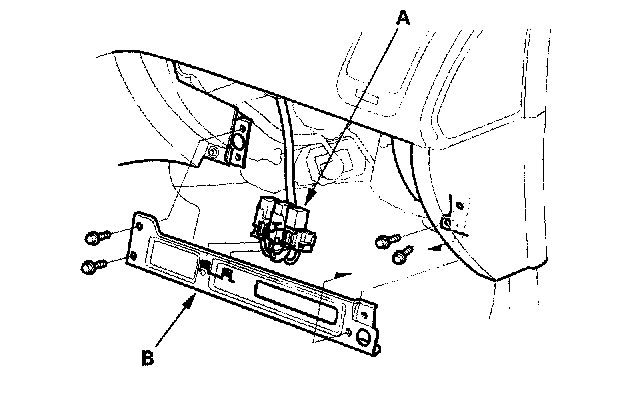 3. Remove the relays (A), then remove the bolts and the glove box frame (B).