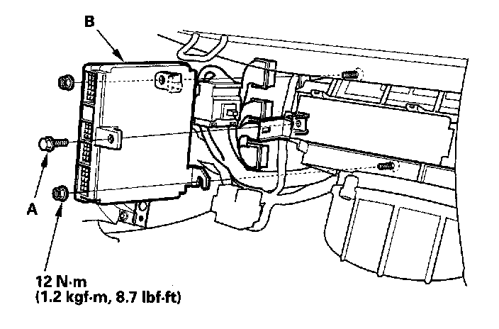 5. Remove the nuts, then remove the PCM (B).