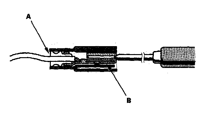 3. If you cannot get to the wire side of the connector or the wire side is sealed (A), disconnect the connector and probe the terminals (B) from the terminal side. Do not force the probe into the connector.