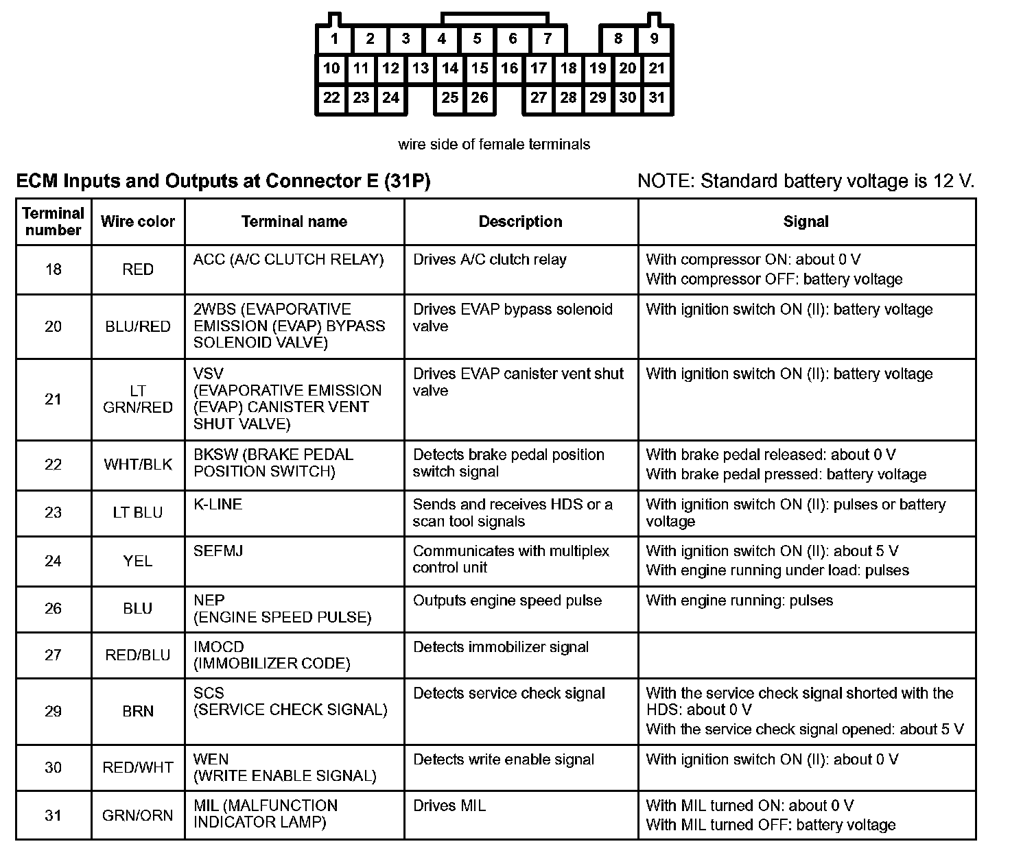ECM Inputs And Outputs At Connectors E (31P) Part 1: