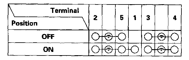 2. Check for continuity between the terminals in each switch position according to the table. If there is no continuity, replace illumination bulbs (C) or the switch.