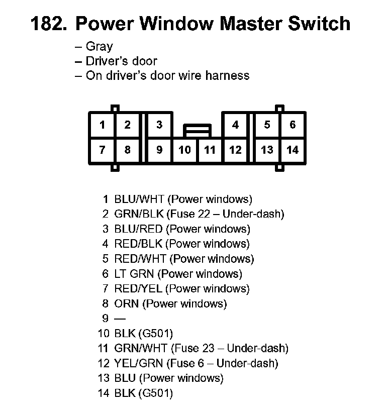 182. Power Window Master Switch: