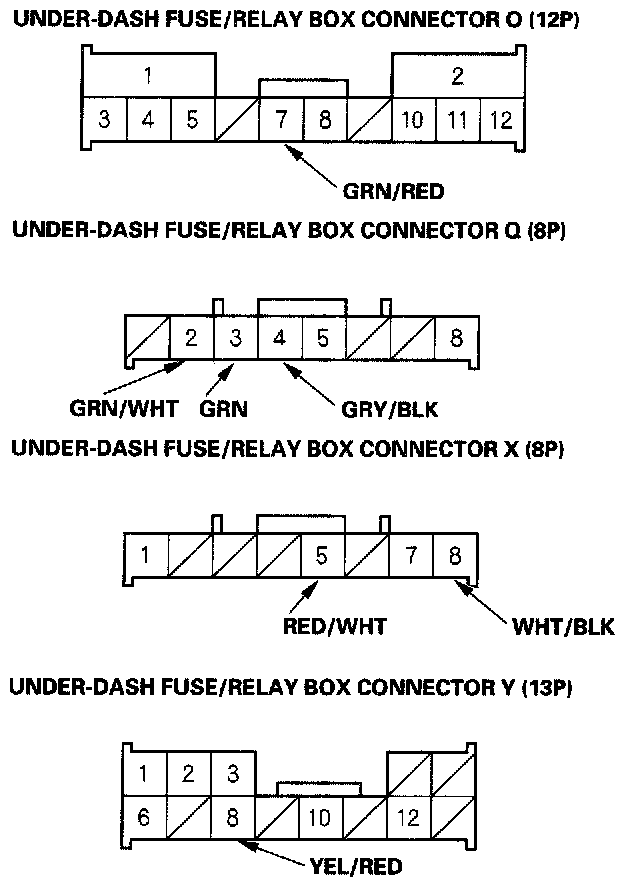 3. Disconnect the underdash fuse/relay box connectors O, Q, X and Y.