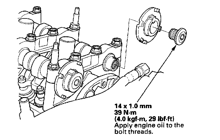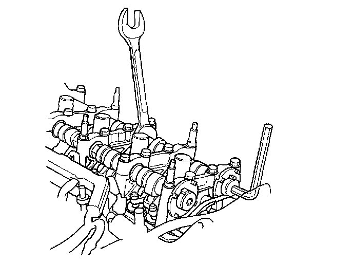 2. Hold the camshaft with an open-end wrench, then loosen the bolt.