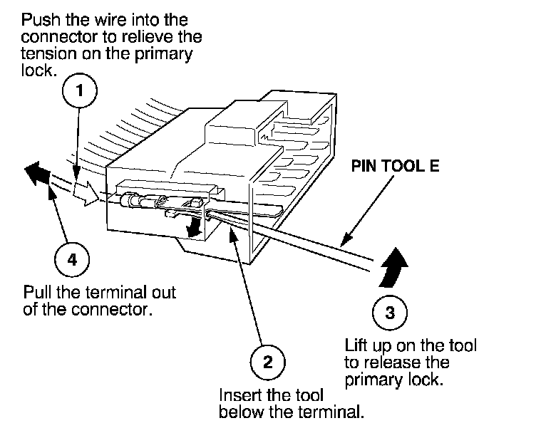 Before you begin, inspect the wire you are about to repair for damage and length. Make sure the wire will be long enough to make a terminal repair without stretching it when you reinstall the terminal in the connector. If the wire is too short, or if access to the connector is too restricted to make a terminal repair, you may need to install a pigtail terminal (a short length of wire with a factory-crimped terminal on it). Refer to HOW TO INSTALL PIGTAIL TERMINALS.