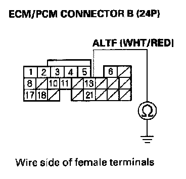 8. Check for continuity between body ground and ECM/PCM connector terminal B13.